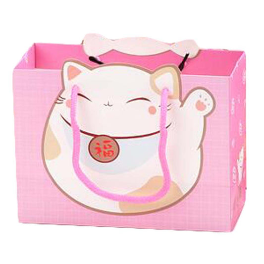 10 Pcs Lucky Cat Kraft Paper Gift Bags Small Boutique Bags Party Favor Bags, Pink