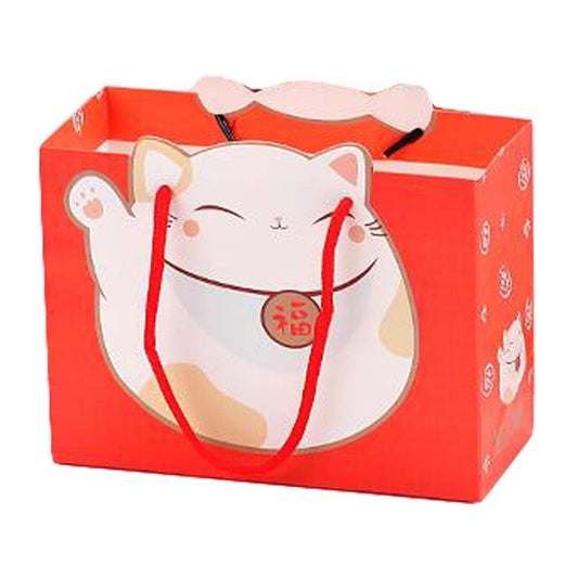 10 Pcs Fortune Cat Kraft Paper Gift Bags Small Boutique Bags Party Favor Bags, Red