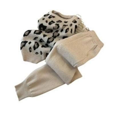 Two-piece Casual Knitted Long-sleeved Pants Printed Beaded Pullover + Double Pocket Lace Pants