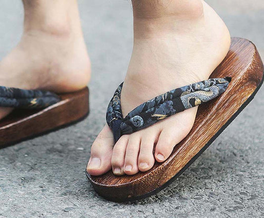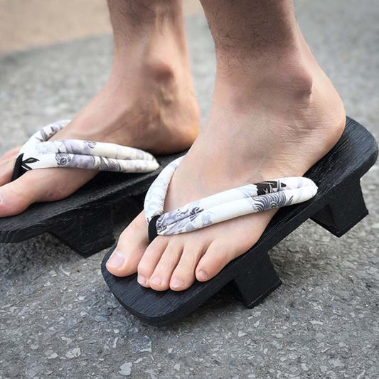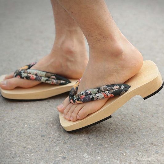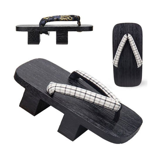 Japanese Wooden Clogs for Mens Sandals Japan Traditional Flip Flops Black Kirin Pattern Non-slip Geta