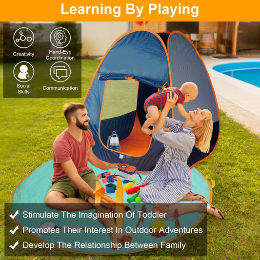 56Pcs Kids Camping Toy Set With Playtent Pretend Oil Lamp Telescope Bonfire Compass Role Play Camping Set