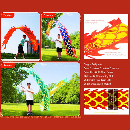 Lightweight Dragon Poi with 3D Dragon Head & Swing Rope Combo for Kids and Beginners, Flowy Dragon Ribbon Streamer Outdoor Fitness Golden Dragon Stage Prop Set
