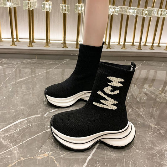 Women Boots Slip On Western Ankle Boots Platform Knitted Ladies Autumn Socks Boots for Women Fashion Female Booties 2021