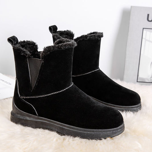 2024 new women's large size plus fleece snow boots casual short boots warm cotton shoes