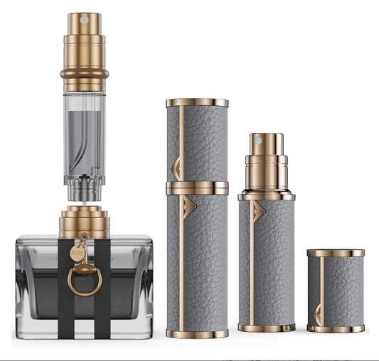 PSLZW003PG portable perfume sub-bottle, 8ml luxury perfume bottle, 2pc sales with purple + gray magnetic leather leakproof Refillable perfume bottle perfume atomizer travel mini perfume bottle thick