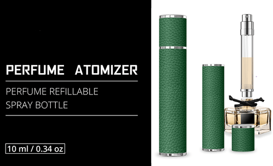 PSXCYB010green 10ml luxury perfume bottle, portable perfume bottle, magnetic suction leather leak-proof Refillable perfume bottle cologne spray, travel mini perfume bottle thick glass bottle travel