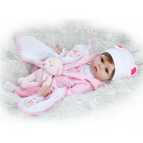 22" Beautiful Simulation Baby Girl Reborn Baby Doll in Bear Dress