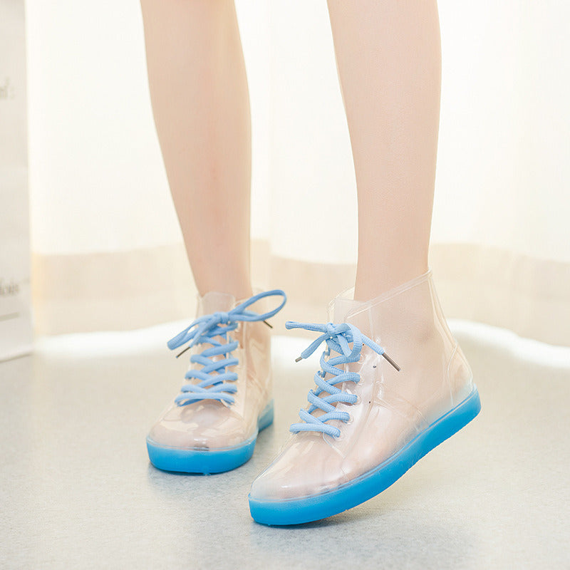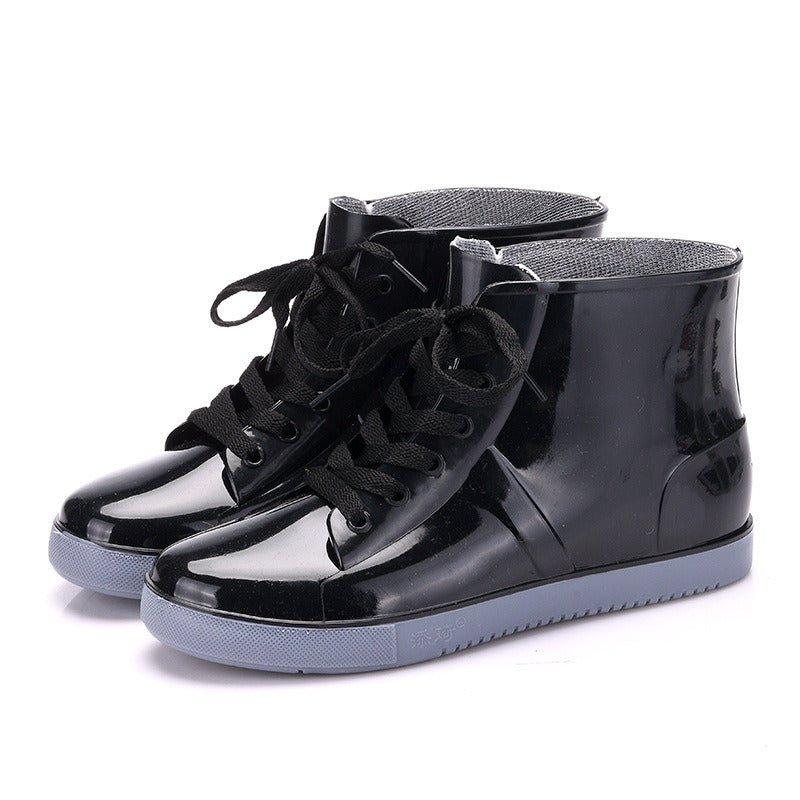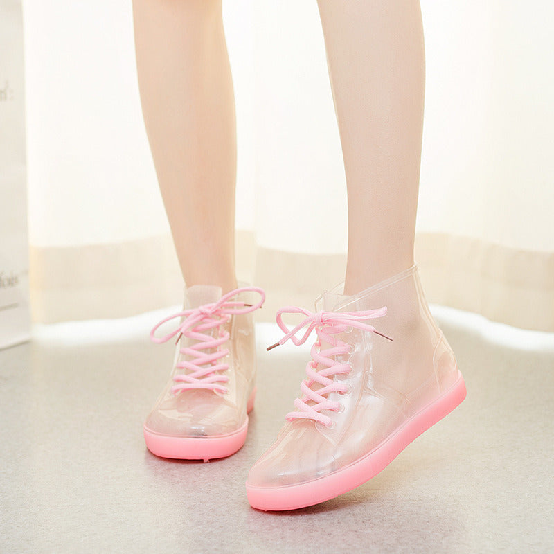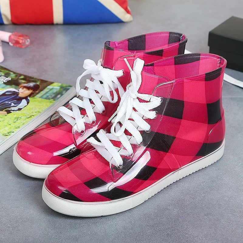 Ankle Rain Boots Removable Cover Platform Lace Up PU Waterproof Motorcycle Colorful Ankle Mature Boots Woman Shoes 2019