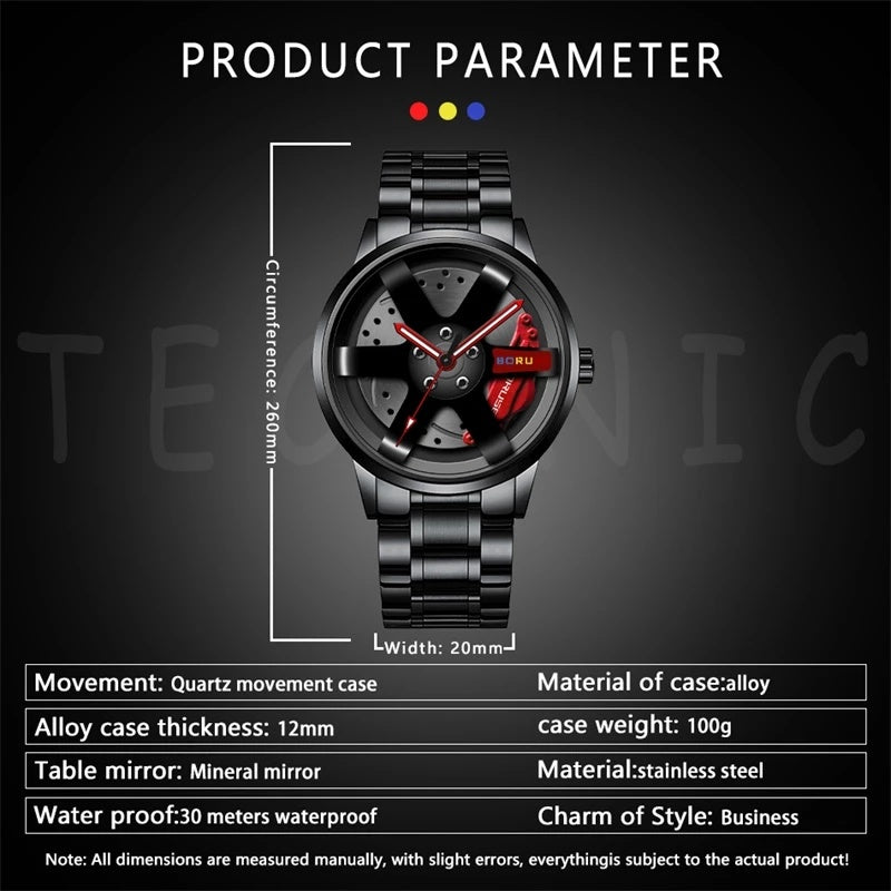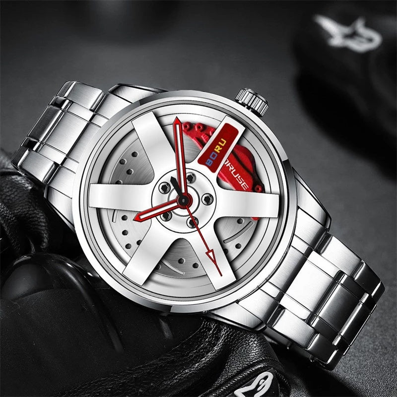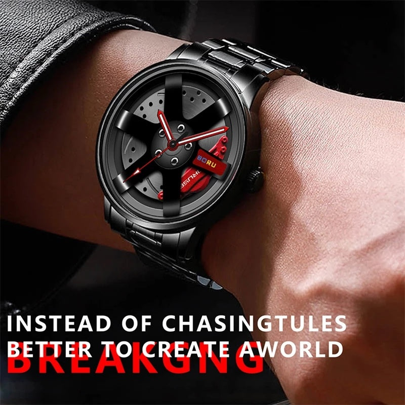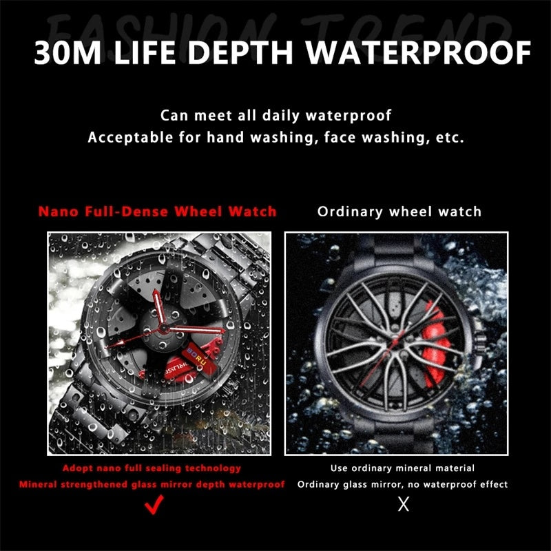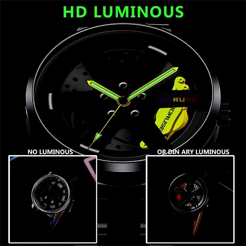 Fashion Luxury Mens Car Wheel Watches Man Business Stainless Steel Waterproof Watch for Men Casual Luminous Quartz Wristwatch