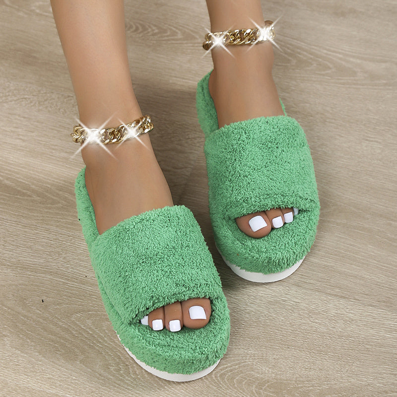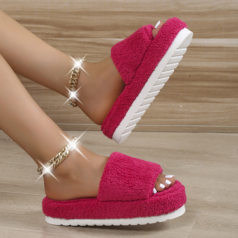 Fur platform slippers women 2022 trend korean winter warm Thick Bottom slippers women home house shoes Green Blue plus size 43