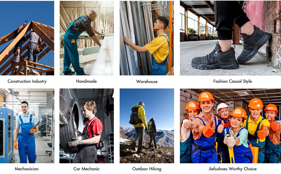 - Safety for Work: Left and Right asymmetrical steel toes; New high-tech synthetic fiber material puncture-resistant midsole; Suit for Mechanic; Concrete; Welder; Construction; Manufacturing & Warehouse; Transportation; Outdoor activities; etc.