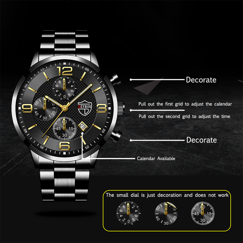 note: The subdial and the chronograph do not work, they are for decoration only.