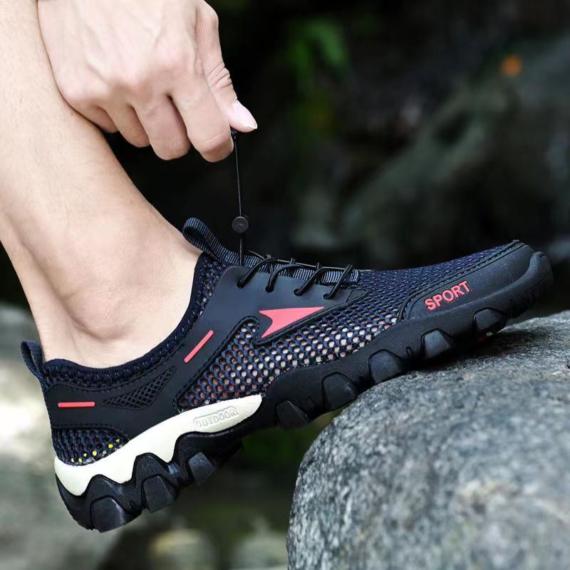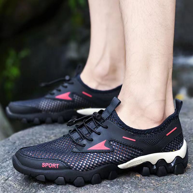 Outdoor Casual Sandals Men 2022 Summer Black Mesh Hollow Breathable Hole Fashion Hiking Sneakers Water Aqua Wading Shoes Fishing