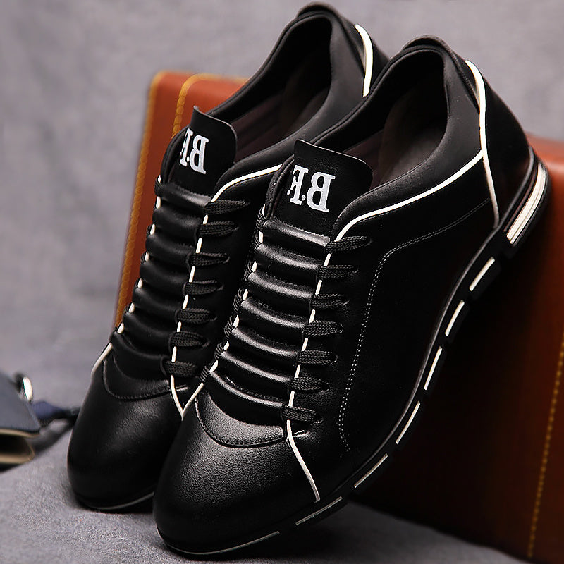 Spring Autumn New Men Shoes Casual Sneakers Fashion Solid Leather Shoes Formal Business Sport Flat Round Toe Light Breathable