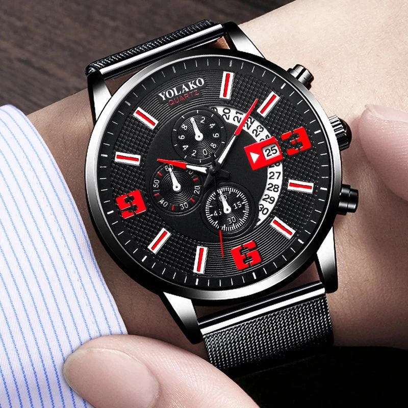 Watches Mens Fashion Calendar Watch Men Business Stainless Steel Mesh Belt Quartz Wrist Watch Male Clock relogio masculino