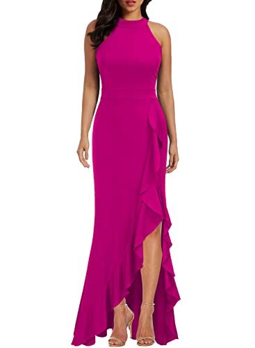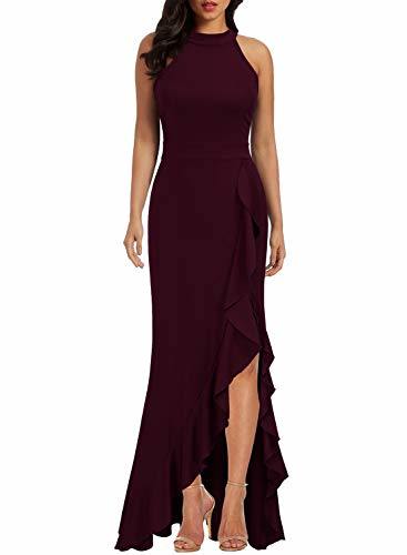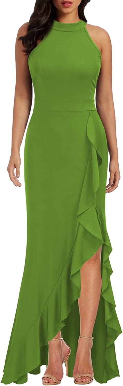 Women's High Neck Split Bodycon Mermaid Evening Cocktail Long Dress